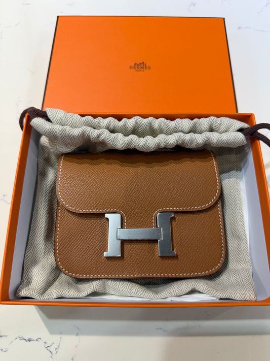 Unworn H Constance Slim Wallet Gold Epsom Palladium Hardware